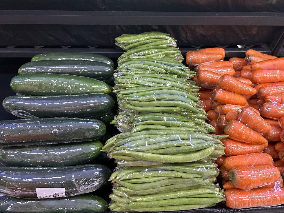 Photograph of produce wrapped in plastic packaging in a local supermarket